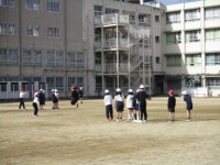 色や形を英語で伝える学習をしています。画面上に一瞬出てくる形を当てるクイズをしました。「Blue star,please!」など、上手に発表できていました。