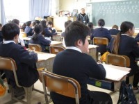「リズム伴奏のおもしろさに注目して、演奏したりおどったりしましょう」の学習です。「いろんな木の実」の曲について、ウッドブロックでリズム感覚をつかみました。