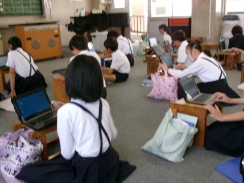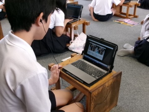 児童用パソコンを使って、リコーダーや歌の確認をしました。