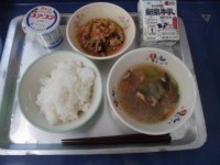 タコライスは、沖縄発祥といわれている料理で、メキシコ料理の「タコス」の具をごはんにのせて食べます。沖縄では、レタスやトマトを生のままトッピングして食べますが、給食では、全てのものを加熱するので、レタスも最後に入れて加熱しました。