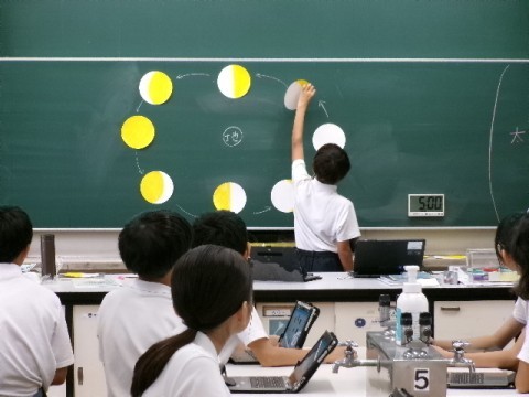 「月と太陽」の学習を進めています。太陽と月の位置関係から,月が照らされている部分について考えました。