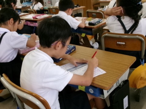 「海のかくれんぼ」の学習です。文章の組み立てを考えながら,「何が」「どこで」「どうしたか」を確認しました。