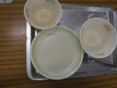 今日のきのこソースには、えのきたけ、しめじが入っていました。きのこは苦手だという人は多いですが、今日はソースもきれいに食べてくれている人が多かったように思います。