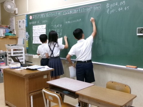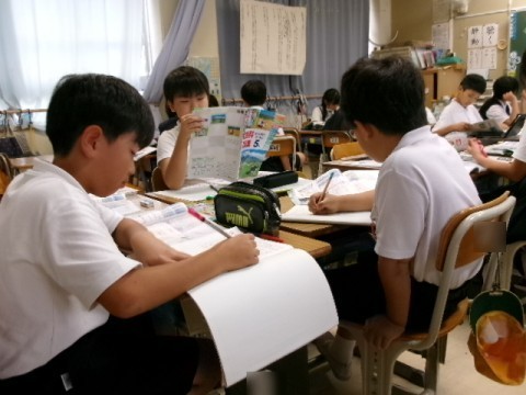 「水産業」の学習を進めています。各グループで,安定した漁業を続けていくための取り組みを調べ,発表しました。