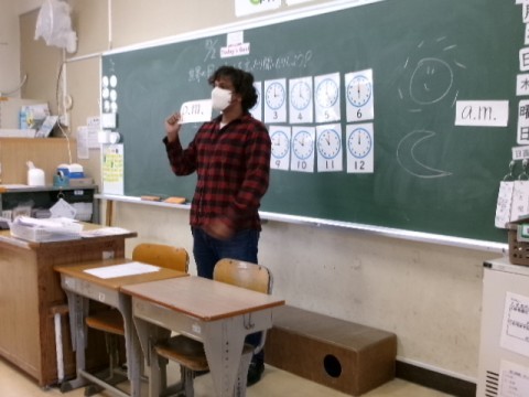 NSの先生といっしょに学習しました。簡単な英語を使って,「世界の時刻」を言ったり聞いたりしました。