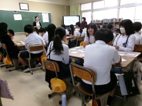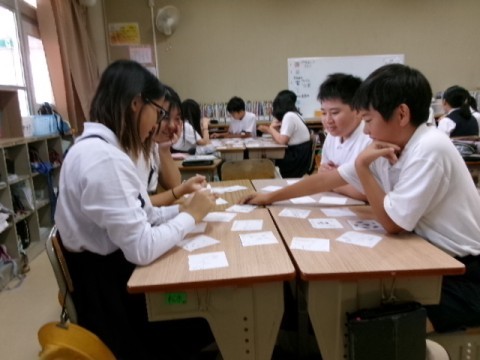 英語を使った「カルタ」に取り組みました。発表者の英文を,最後までしっかり聞くことができています。