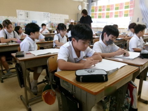 「短歌・俳句に親しもう」の学習です。文字の数を考えながら,「短歌・俳句」づくりにチャレンジしました。