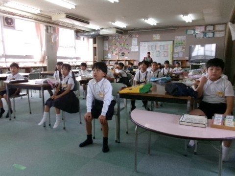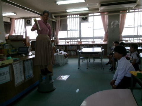 図書館へ行きました。学校司書の先生から本の読み聞かせがありました。