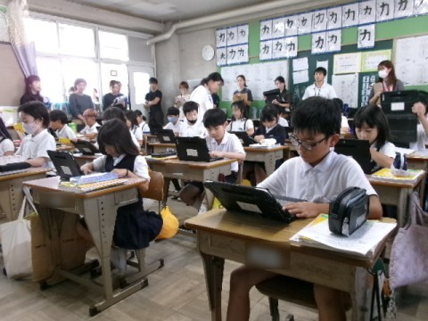 「わたしたちのくらしとまちではたらく人々」の学習です。先日の「スーパーマーケット見学」で学習したことをパソコンでまとめました。