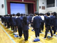 全校朝礼の様子です。先生方のお話や理科展の表彰,各委員会からの連絡がありました。