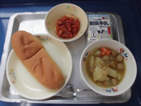 今日のスープ煮は、カレー風味でした。最後にスパイシーな香りで食欲がわきます。