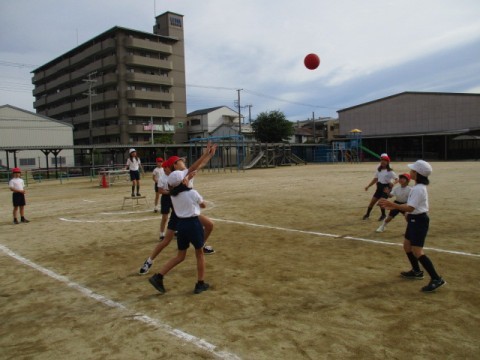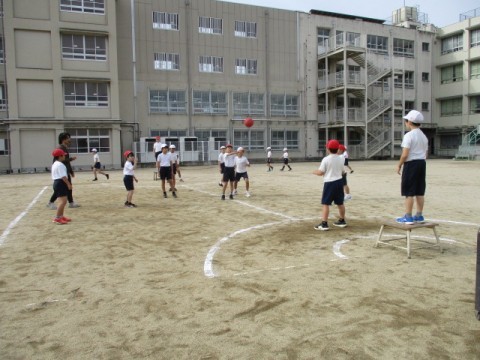 「ポートボール」の学習です。ルールを守って,楽しく学習に取り組んでいます。