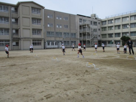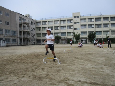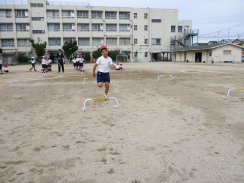 「小型ハードル走」の学習です。どうすればリズミカルに跳ぶことができるかを考えました。