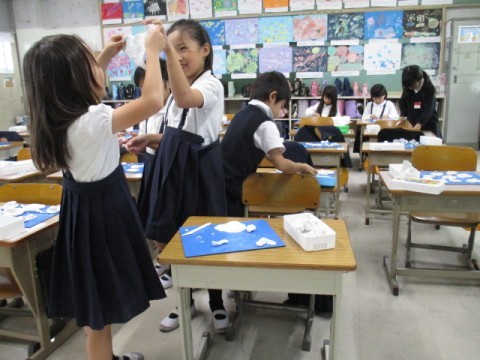 「いろんなともだち はなし出す」をテーマに,粘土を使った制作をしています。いろいろな場所で型を取り,楽しく取り組んでいます。