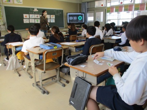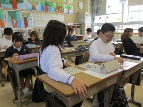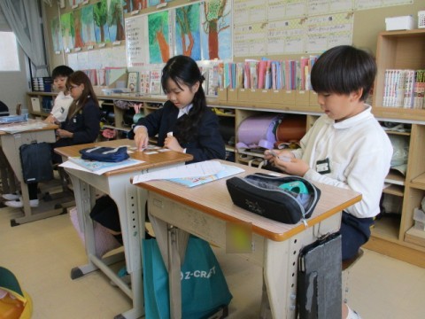 簡単な英語を使ってのアクティビティで,「文房具」の名前を覚えました。