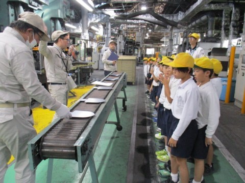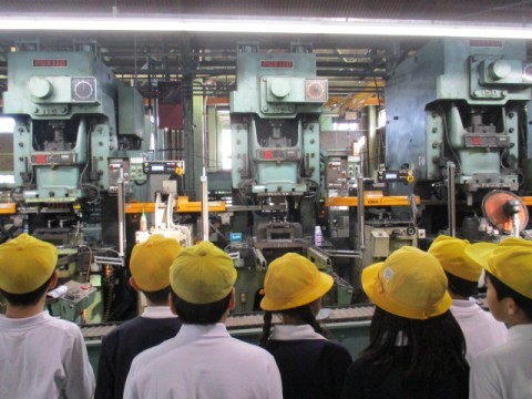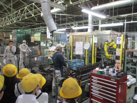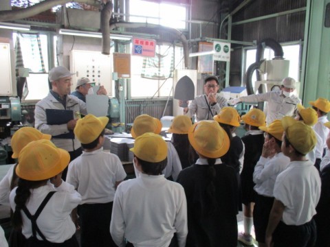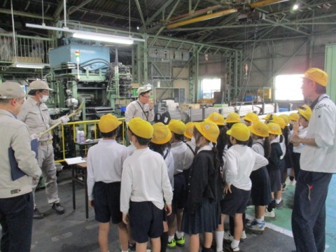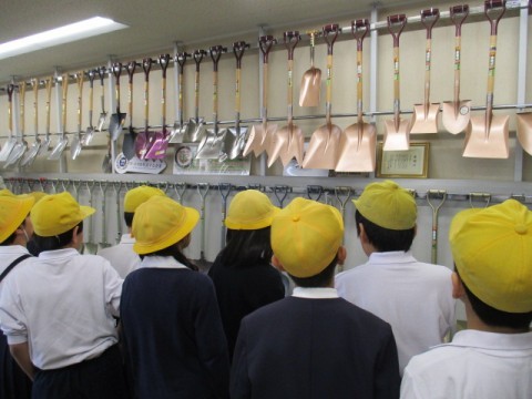 地域にある「浅香工業」さんへ,社会見学に行きました。「シャベル・スコップ」の製造過程を見せていただきました。
