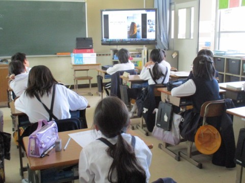 食育の学習です。オンラインで北海道の昆布漁師さんからお話を聞きました。