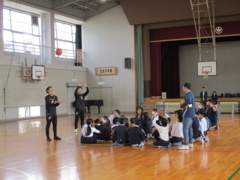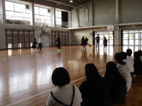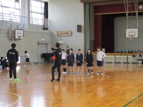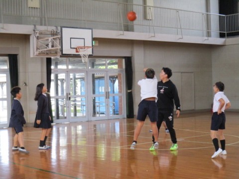 講師の先生をお招きし,「さくら・夢事業 バスケットボール教室」を開催しました。バスケットボールコーチといっしょに,ゲームを楽しみました。