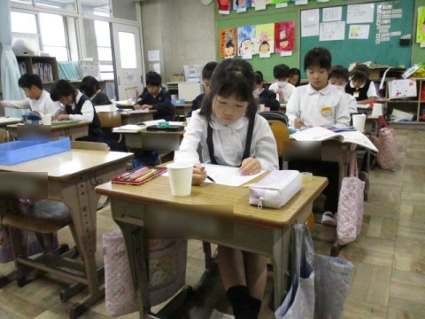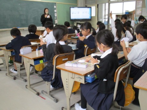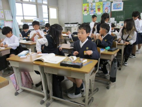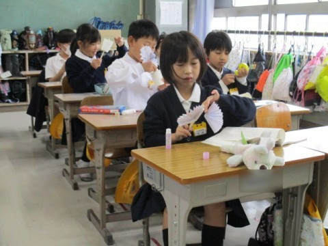 「紙コップ花火の作り方」という説明文を学習しています。今日はグループにわかれて,「紙コップ花火」を作ってみました。
