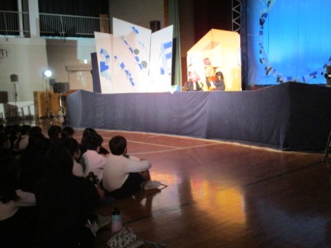 「劇団クラルテ」さんをお招きし,芸術鑑賞会をしました。「いえでででんしゃ」というお話の楽しい人形劇を鑑賞しました。