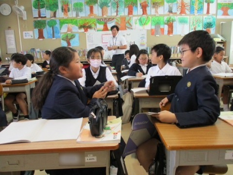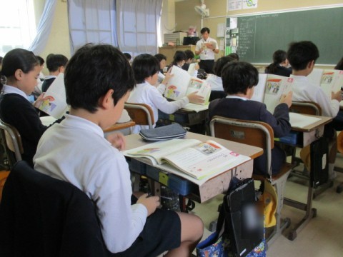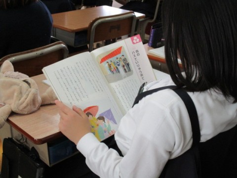「雨のバス停留所で」の学習です。みんなが気持ちよく過ごすために大切なことを考えました。