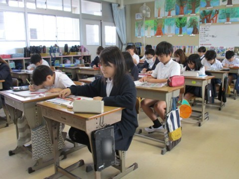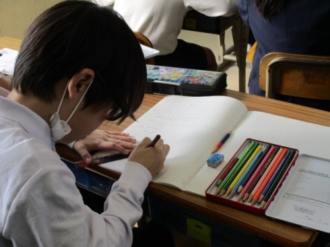 「垂直・平行と四角形」の学習を進めています。三角定規を使わずノートの方眼を使って,いろいろな形を書きました。