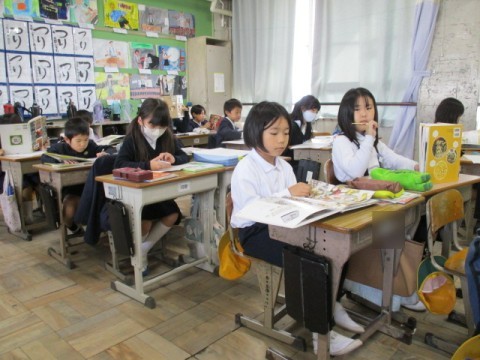 「食べ物のひみつ教えます」という単元を進めています。自分で選んだ食べ物について調べ学習をしています。