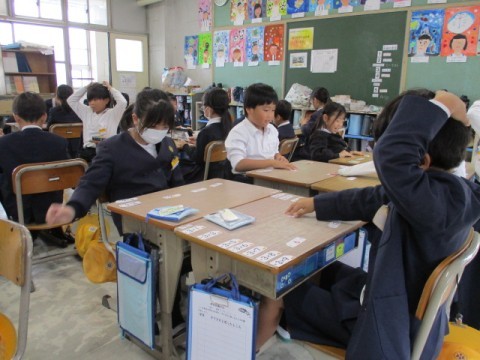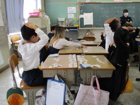 九九の学習を進めています。「九九カード」を使って,楽しく復習をしました。