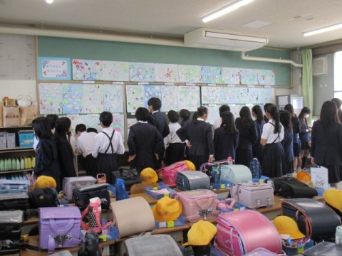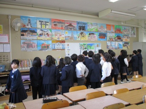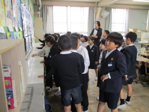 校内図画展の鑑賞をしました。いろいろな学年の絵を見て回り,楽しく鑑賞しました。