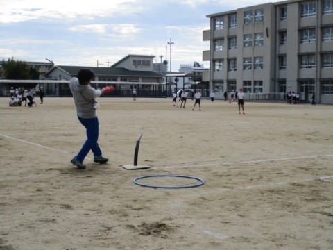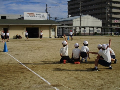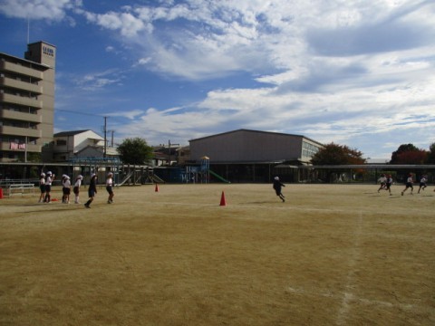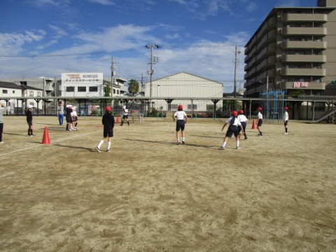 ティーボール」の学習です。1組・3組の対抗試合を行いました。