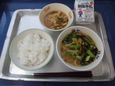 小松菜はカルシウムがたっぷり含まれています。小松菜が入ったみそ味のラーメンは、こどもたちにも人気のメニューです。