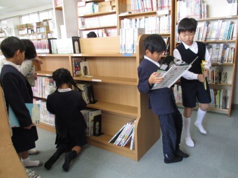 図書館へ行きました。借りていた本を返却し,新しく本を借りなおしました。