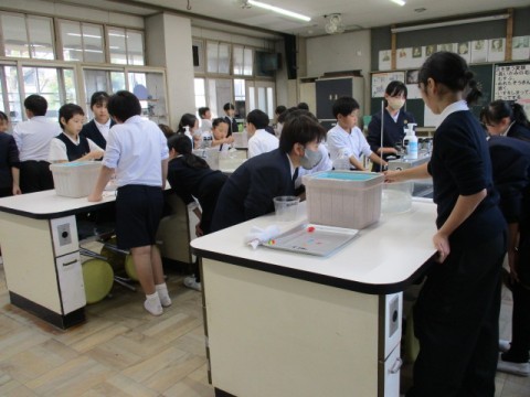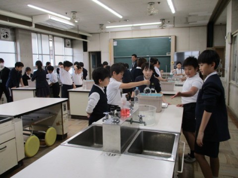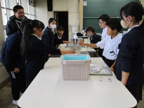 理科室で学習しています。「空気の温度と体積」について,実験で確かめました。