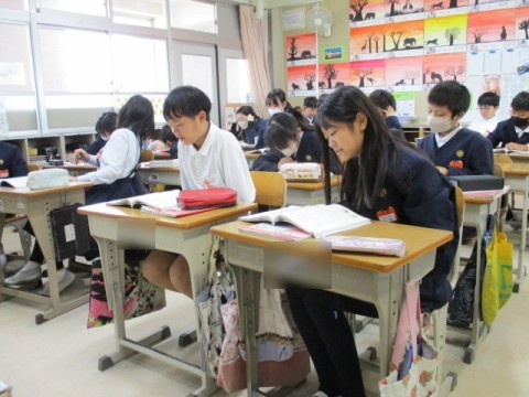 「古典の世界」の学習です。「論語」「漢語」の暗唱にチャレンジしています。
