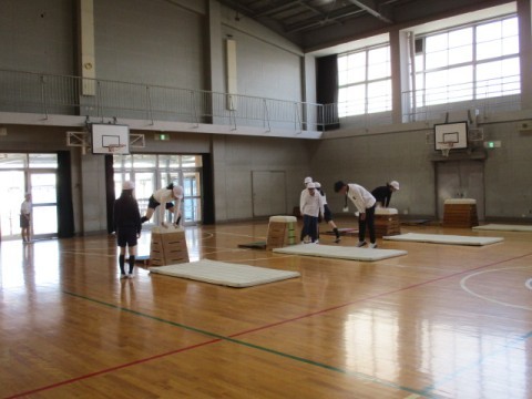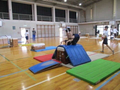 「跳び箱運動」の学習です。「開脚跳び」「台上前転」など,いろいろな技にチャレンジしています。