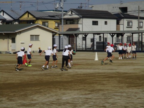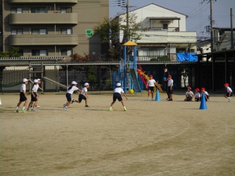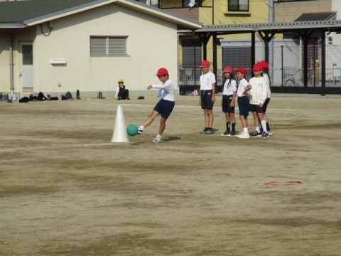 「キックベースボール」の学習に入りました。ルールを確認し,ためしのゲームをしました。