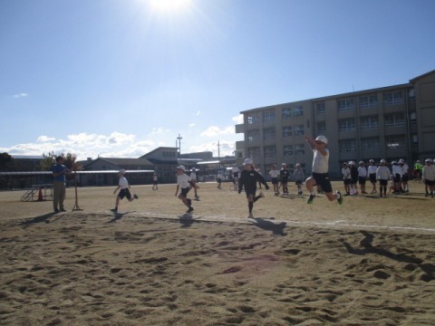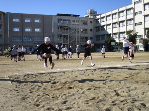「走り幅跳び」の学習です。どうすれば遠くへ跳べるかを考えました。
