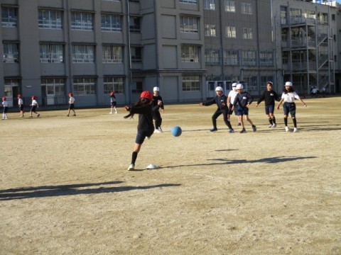 「キックベールボール」の学習です。ルールを守り,楽しく学習に取り組んでいます。