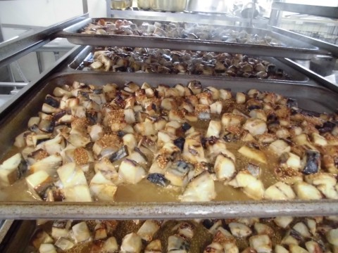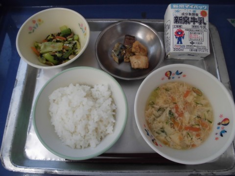 今日はだしのきいたむらくも汁、ごま味噌のタレをかけて焼いたさばのごまみそ焼き、堺産の小松菜たっぷりの炒め煮の和食献立でした。子どもたちは、「さばとごはんと食べたらおいしい!」「この野菜のおかず、好き!」嬉しい言葉をたくさん聞かせてくれました。