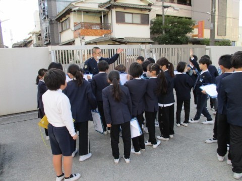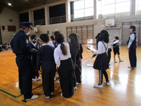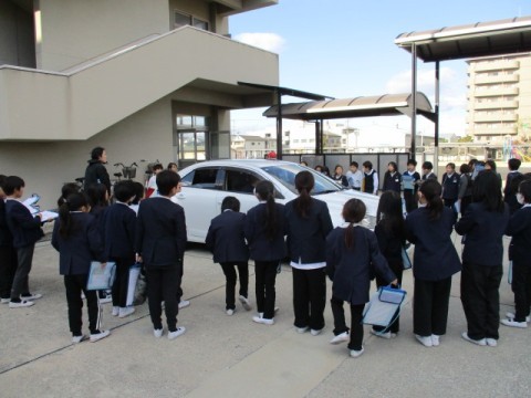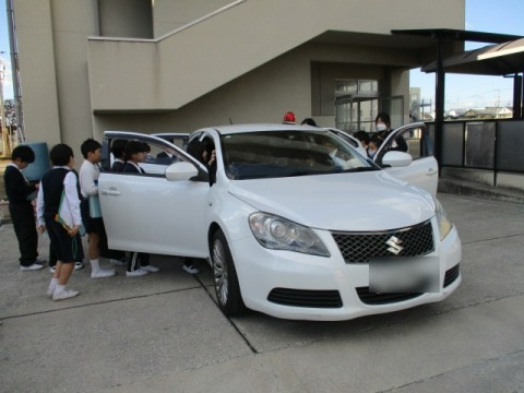 堺警察署から講師の先生に,「出前授業」をしていただきました。堺警察署の中をオンライン中継で見たり,覆面パトカーに乗せていただいたりしました。子どもたちは大喜びでした。