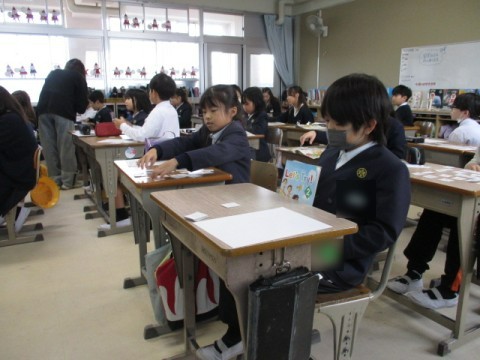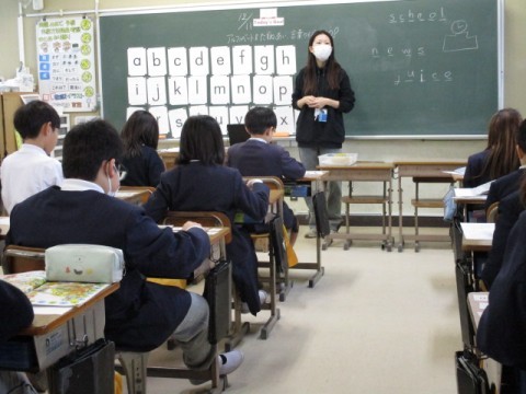 NSの先生もいっしょに「アルファベット」の学習をしました。クイズをしながら,楽しく学習に取り組んでいます。