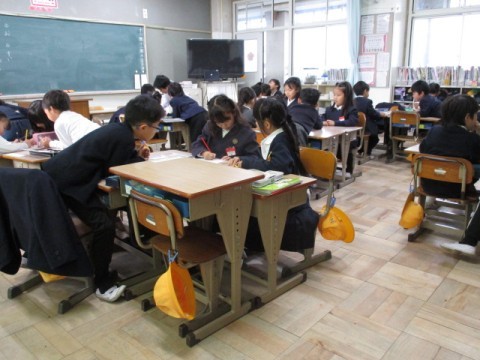 昨日の「三宝学習発表会」について,ありがとうの意味を込めてメッセージを書きました。「皿回しがすごかったことを伝えたい!」など,たくさんの意見が出ていました。