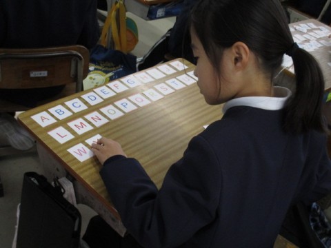「アルファベットカード」を使って学習しました。「A~Z」までの順番や読み方を確認しました。