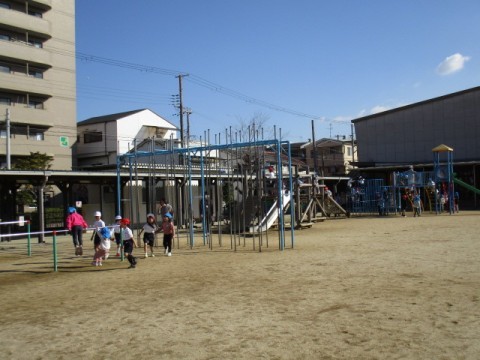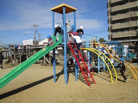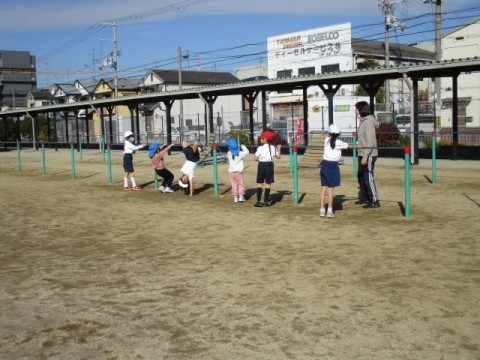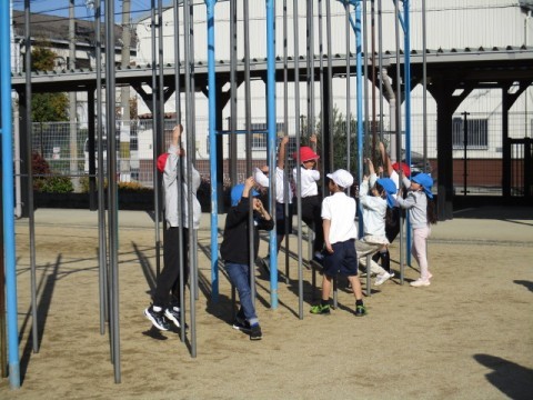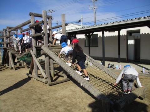 三宝こども園との交流会をしました。運動場の遊具など,いろいろな遊びを楽しみました。