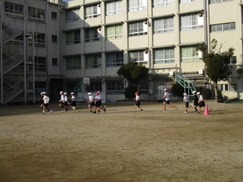 学習のはじめには,5分間のかけ足に取り組んでいます。自分のペースでがんばっています。