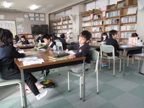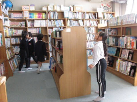 図書館へ行きました。借りたい本をさがし,読書を楽しみました。