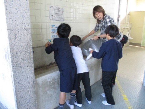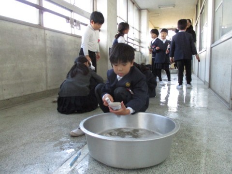 「うわぐつあらい」をしました。細かいところまで丁寧に洗う姿が見られ,「お家でもやってみよう」と言っている児童もいました。