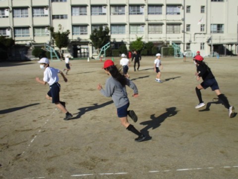 クラスみんなで,「しっぽ取り鬼ごっこ」をしました。ルールを守って,楽しく過ごしています。