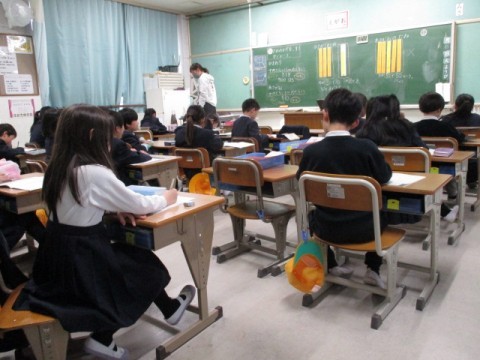 「38」など,2ケタの数字について学習しています。数字ブロックを使って確認しました。