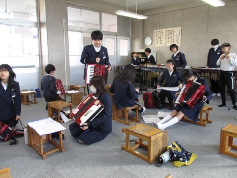 卒業コンサートに向けて練習を進めています。各パートにわかれて,クラス曲「RPG」の合奏を練習しました。